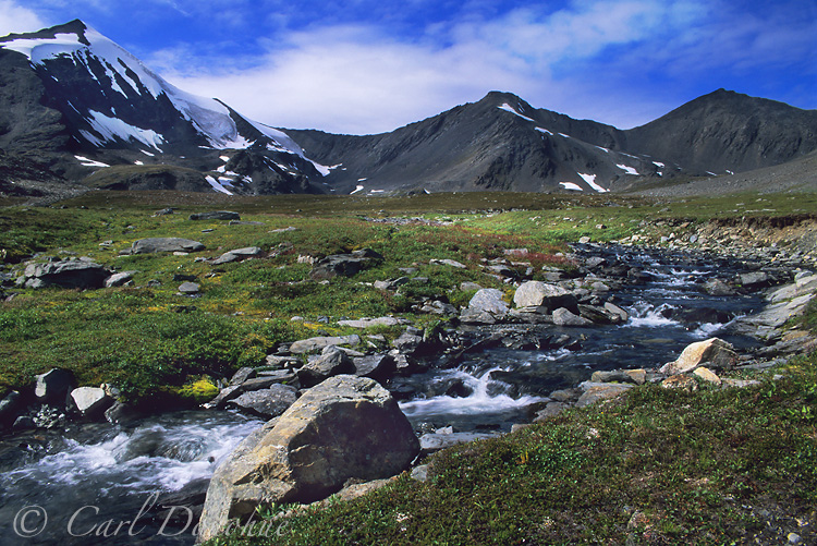 Chugach Mountains, Wrangell St. Elias National Park, Alaska. ← Previous Next → Alpine Chugach. A small fast stream runs through this high alpine valley in the Chugach Mountains, Wrangell-St. Elias National Park, Alaska.